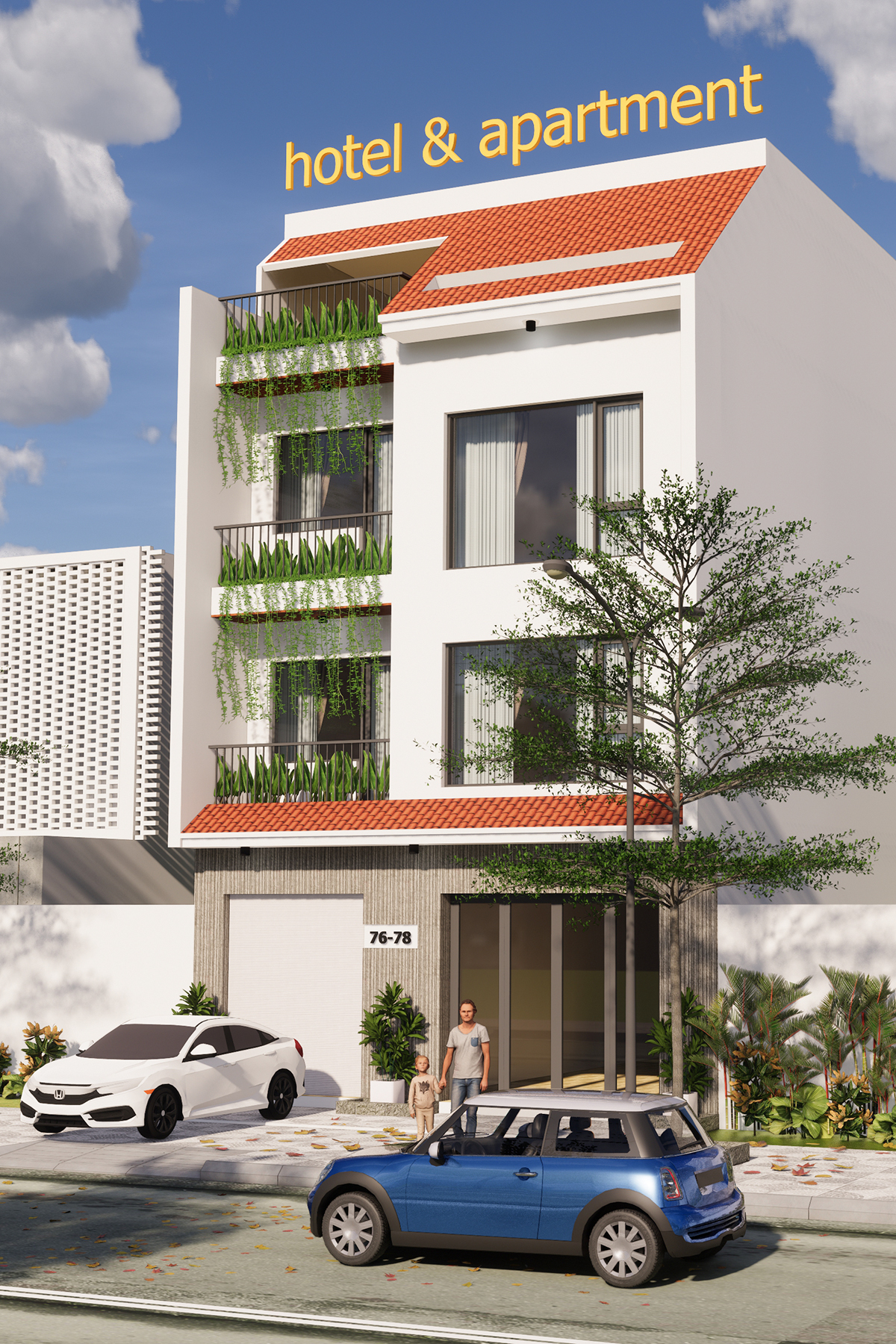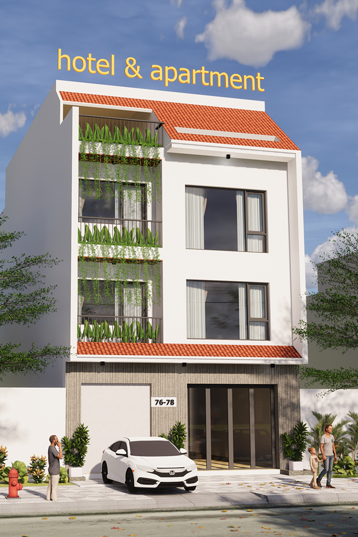 Chủ đầu tư muốn xây công trình với mục đích là cho thuê lưu trú ngắn hạn và dài hạn. Vì được công ty thiết kế kiến trúc Thảo Nguyên tư vấn phong cách kiến trúc hiện đại để tôn vinh công trình kết hợp với mảng xanh tạo nên không gian xanh.