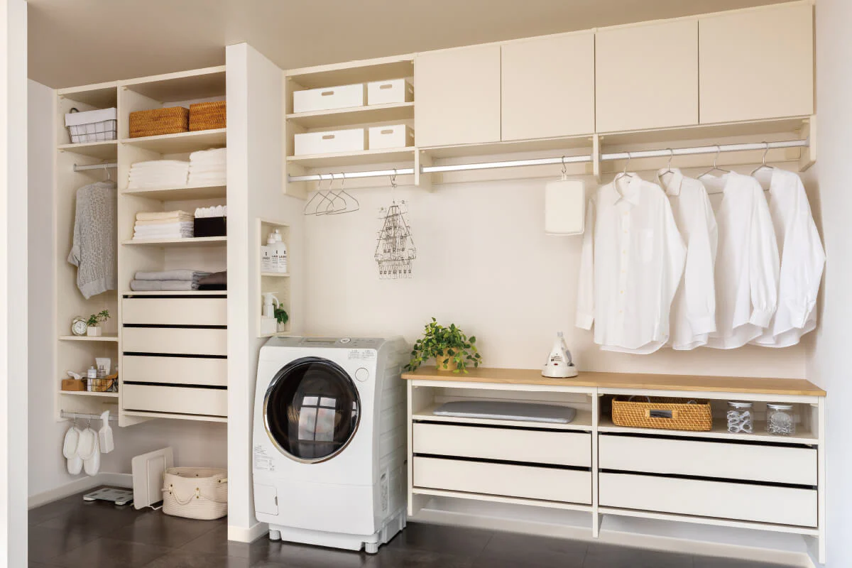 Việc sắp xếp đồ đạc vào những chỗ trống phù hợp giúp bạn tiết kiệm tối đa diện tích sử dụng, giúp phòng giặt trở nên gọn gàng và tối ưu hoá không gian sống.