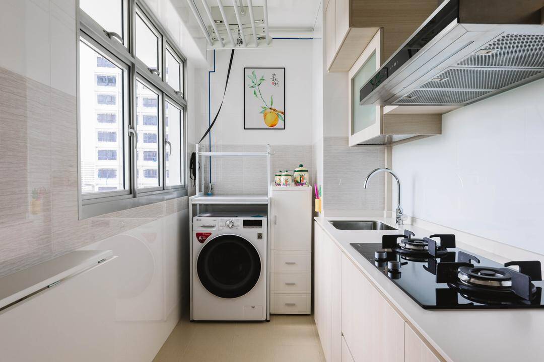 Tích hợp phòng giặt kết hợp với phòng bếp giúp tối ưu không gian sống