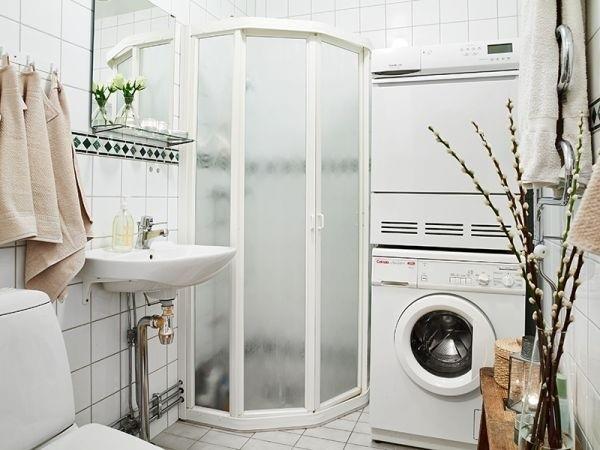 Việc tận dụng một góc nhỏ trong căn phòng tắm là lựa chọn vô cùng tiện lợi, bởi bạn có thể dễ dàng bỏ quần áo ngay sau khi tắm vào máy giặt.