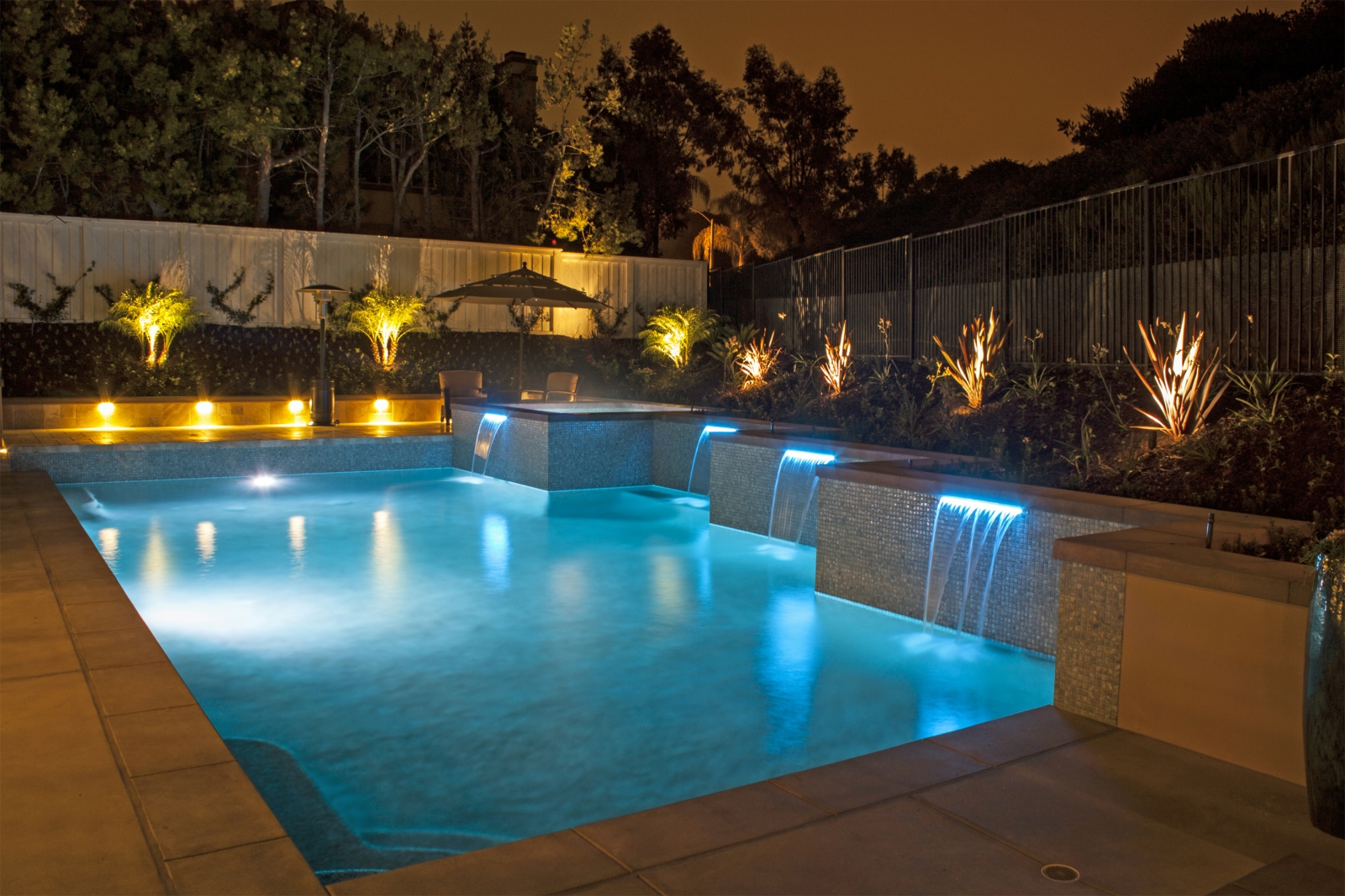 Hệ thống đèn LED dưới nước sẽ biến hồ bơi thành một điểm nhấn lung linh vào buổi tối. Màu sắc của đèn có thể điều chỉnh theo ý muốn, tạo ra không gian lãng mạn và độc đáo.