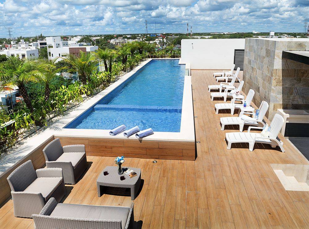- Sân thượng sẽ trở thành một nơi thư giãn giúp bạn đắm mình trong làn nước trong xanh, tắm nắng và thư giãn sau những giờ làm việc căng thẳng.