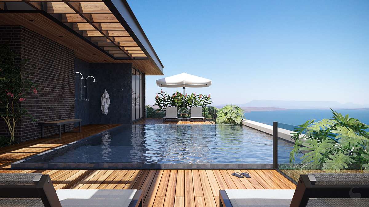 - Bể bơi trên sân thượng là điểm nhấn độc đáo, biến ngôi nhà của bạn thành một không gian sang trọng, thu hút sự chú ý của nhiều người yêu thích phong cách sống đẳng cấp.