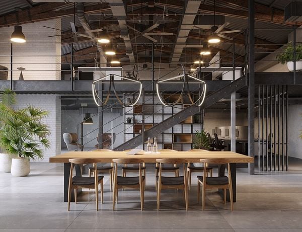Phong cách công nghiệp mang đến một vẻ đẹp thô mộc và mạnh mẽ, lấy cảm hứng từ các nhà máy, xưởng sản xuất cũ. Đặc trưng của phong cách này là việc sử dụng các vật liệu thô như kim loại, gỗ, bê tông cùng với các đường ống, dầm lộ thiên. Không gian thiết kế theo phong cách công nghiệp thường rộng rãi, thoáng đãng, mang lại cảm giác hiện đại, độc đáo và tràn đầy năng lượng.