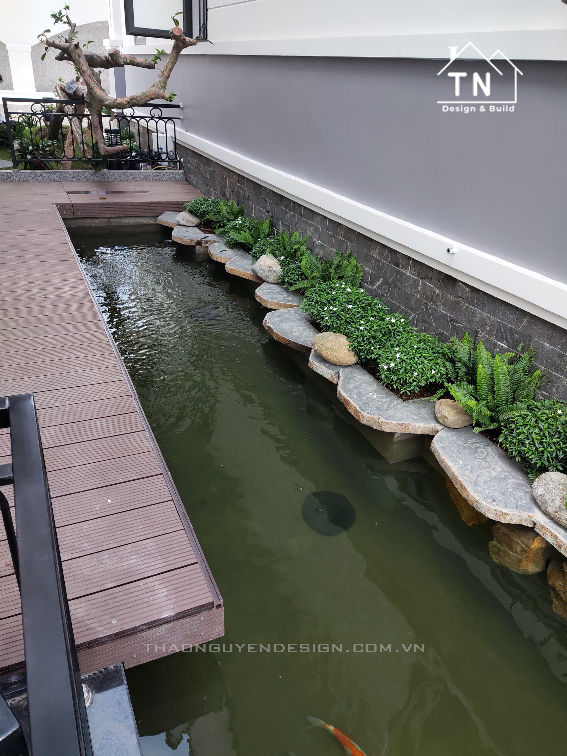 Đây có lẽ là phong cách được nhiều người theo đuổi nhất. Sự tự do phóng khoáng chính là điều người ta hướng tới khi nuôi những chú cá Koi. Với hình dáng hồ tự do,chủ đầu tư có thể thoải mái trang trí và phối cảnh cho hồ cá Koi mini của mình, tuỳ vào ý thích và khả năng của gia chủ. Hình dáng hồ cá được các kiến trúc sư công ty TNHH thiết kế xây dựng Thảo Nguyên đã bố trí tinh tế cập xung quanh căn biệt thự.