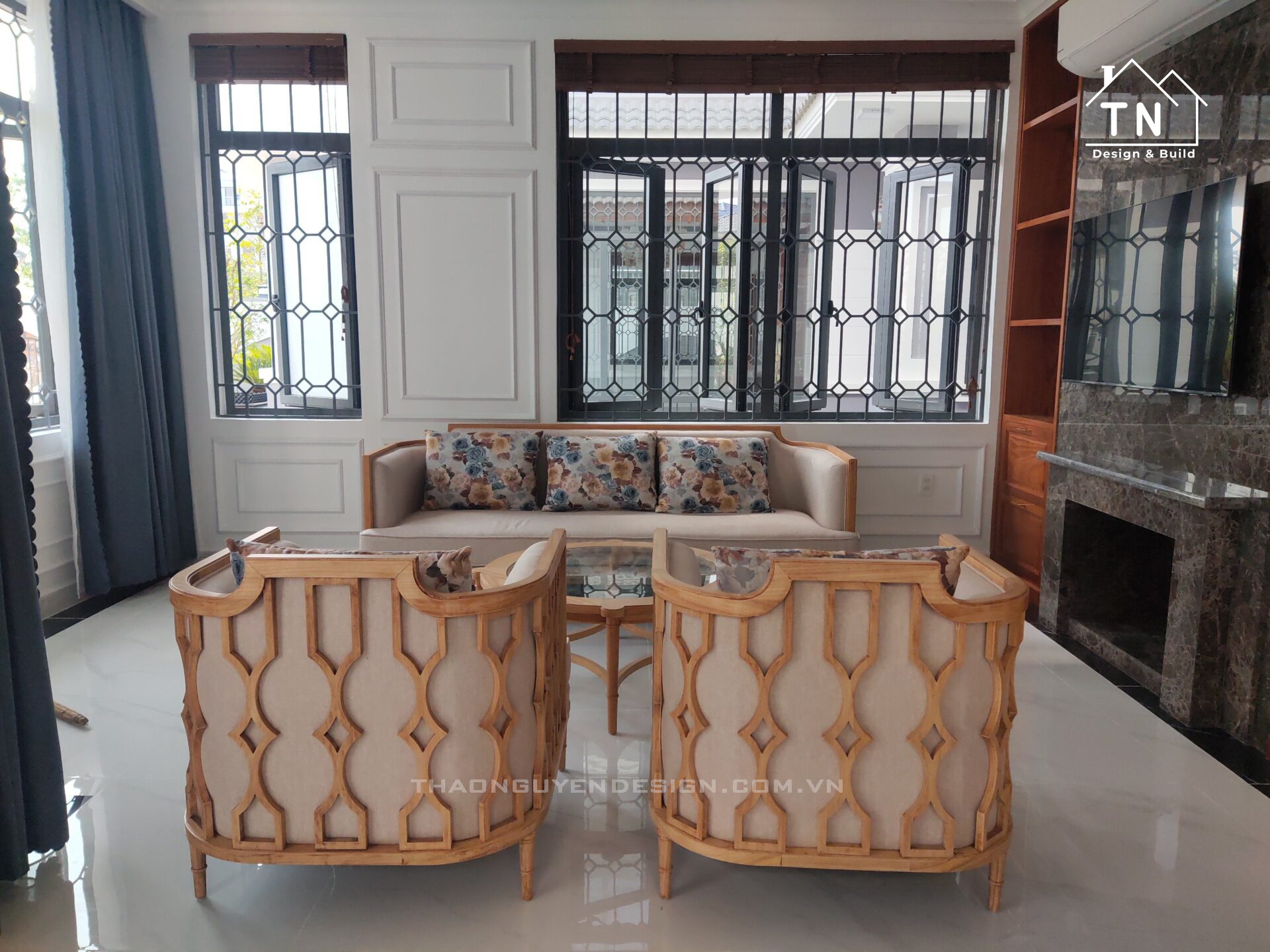 Sau quá trình tìm hiểu bạn bè và trên mạng về các công ty kiến trúc nội thất, chú đã chọn lọc và quyết định đến công ty TNHH kiến trúc xây dựng Thảo Nguyên cũng như trao đổi các kiến trúc sư của chúng tôi, gia đình đã yêu cầu công ty thiết kế và thi công trọn gói, từ tường rào, khu vực tiểu cảnh hồ cá cho đến kiến trúc ngoại thất và nội thất của biệt thự tân cổ điển