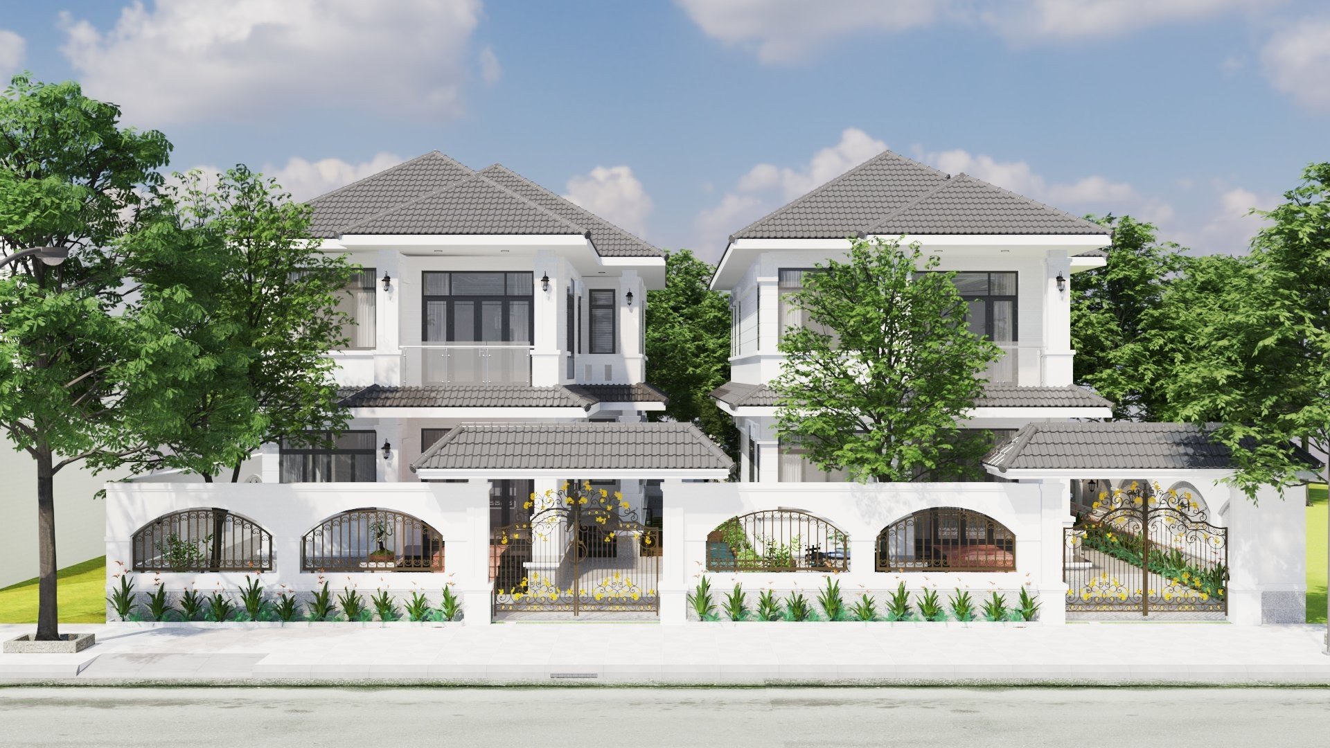 Mẫu thiết kế biết thự song lập của công ty TNHH thiết kế xây dựng Thảo Nguyên hiện nay đang được rất nhiều khách hàng tìm hiểu và lựa chọn vì những lợi ích mà mẫu thiết kế biệt thự này mang lại cho chủ đầu tư, hơn thế nữa chúng cũng toát ra vẻ uy nghi, bề thế và sang trọng. Các kiến trúc sư công ty chúng tôi rất tinh tế lấy màu trắng làm chủ đạo, kết hợp mái ngói cổ điển màu xám , xung quanh trồng các cây xanh , bên cạnh bố trí hồ cá hòa với thiên nhiên làm tôn lên vẻ sang trọng và ấn tượng căn biệt thự song lập.