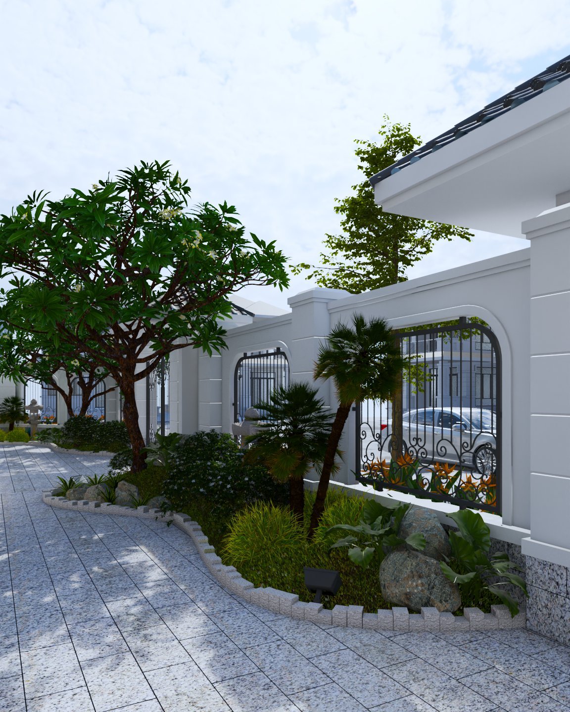 Chiêm ngưỡng công trình biệt thự cao cấp mang phong cách Nhật qua phối cảnh 3D cũng có thể nhận ra chủ đầu tư là người yêu thiên nhiên. Đây là đam mê của rất nhiều gia chủ, nhưng không phải ai cũng có đủ khả năng kinh tế để theo đuổi niềm đam mê này một cách trọn vẹn. Trong những buổi trao đổi giữa gia chủ và đơn vị thiết kế, chúng tôi đã khai thác nhu cầu của họ để đưa phối cảnh chi tiết nhất về diện tích không gian dành cho cây cối xung quanh nhà. Một ngôi nhà được bao bọc bởi cây xanh không chỉ mang lại nguồn không khí trong lành mà còn giúp gia chủ được an nhiên, thư giãn và thu hút nhiều vượng khí. Đồng thời KTS công ty Nguyên Thảo còn hỗ trợ tư vấn lựa chọn trồng những loại cây cảnh giúp thu vượng khí và may mắn cho gia chủ.