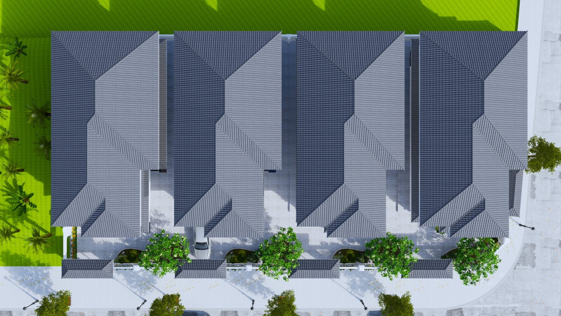 Biệt thự được thiết kế với 2 tầng cùng không gian mở thoáng đãng dành cho người sử dụng. Thiết kế mái ngói dốc khiến người xem liên tưởng đến văn hoá người Châu Á nói chung. Tuỳ thuộc vào đặc điểm tự nhiên của địa hình cũng như khí hậu thời tiết, chi tiết mái của căn biệt thự cũng sẽ ảnh hưởng tới người dùng trong quá trình sử dụng. Với điều kiện thời tiết của nước ta nói riêng và miền Nam nói chung loại mái dốc sẽ phù hợp hơn hẳn, giúp biệt thự khô ráo, khô ứ đọng nước và hạn chế tối đa những tác động xấu của thời tiết đem lại.