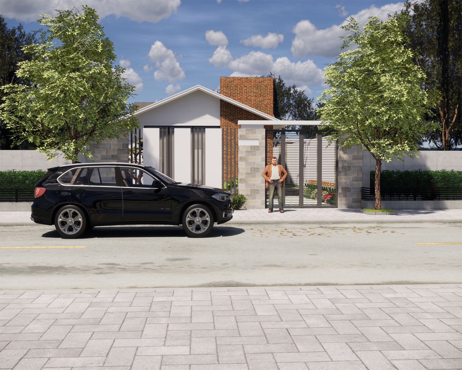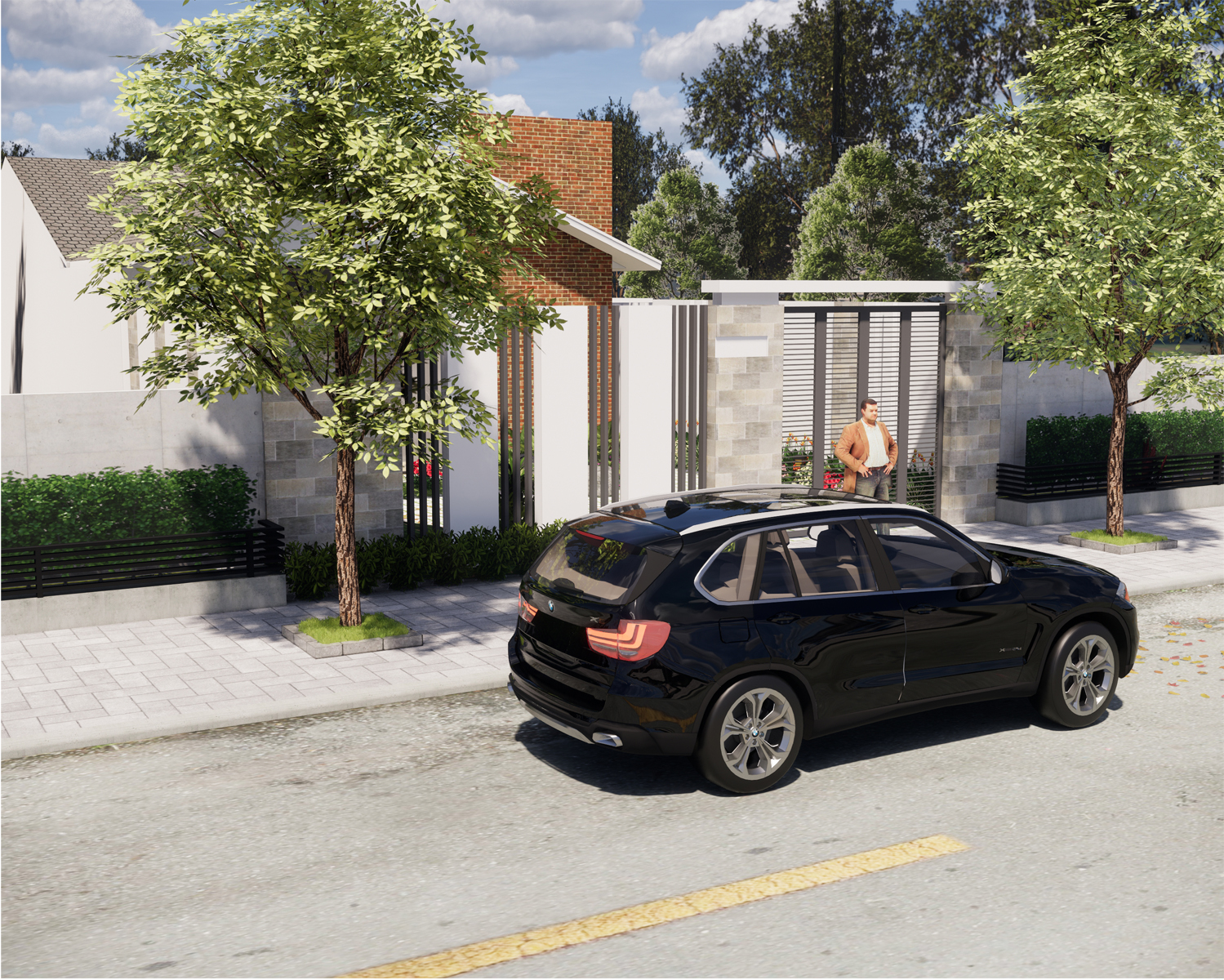Nhà được thiết kế với ba khoảng sân, sân trước dùng làm nơi đỗ xe, phía hiên nhà làm nơi thư giãn hống gió , sân sau làm nơi sân phơi, trồng rau để có rau sạch cho cả nhà.