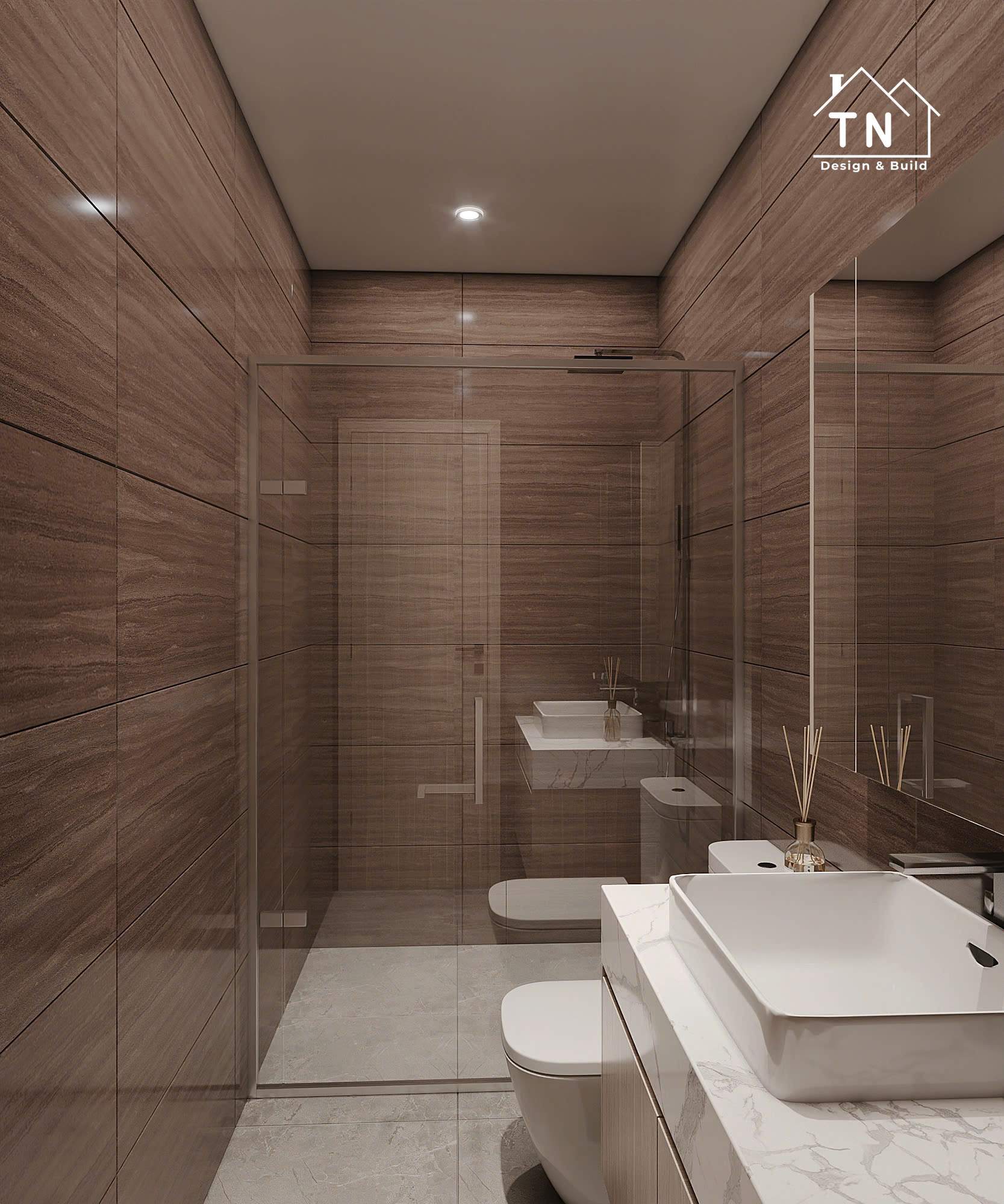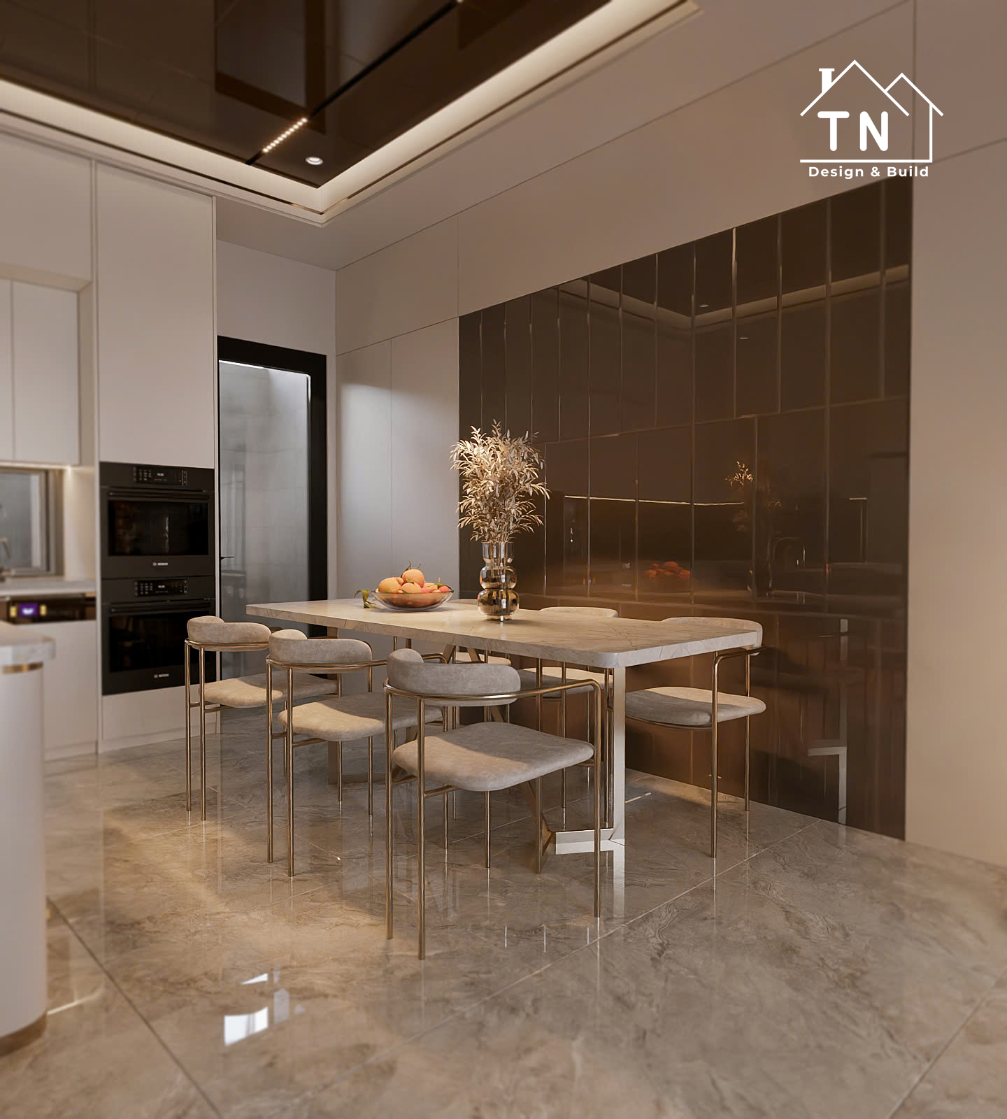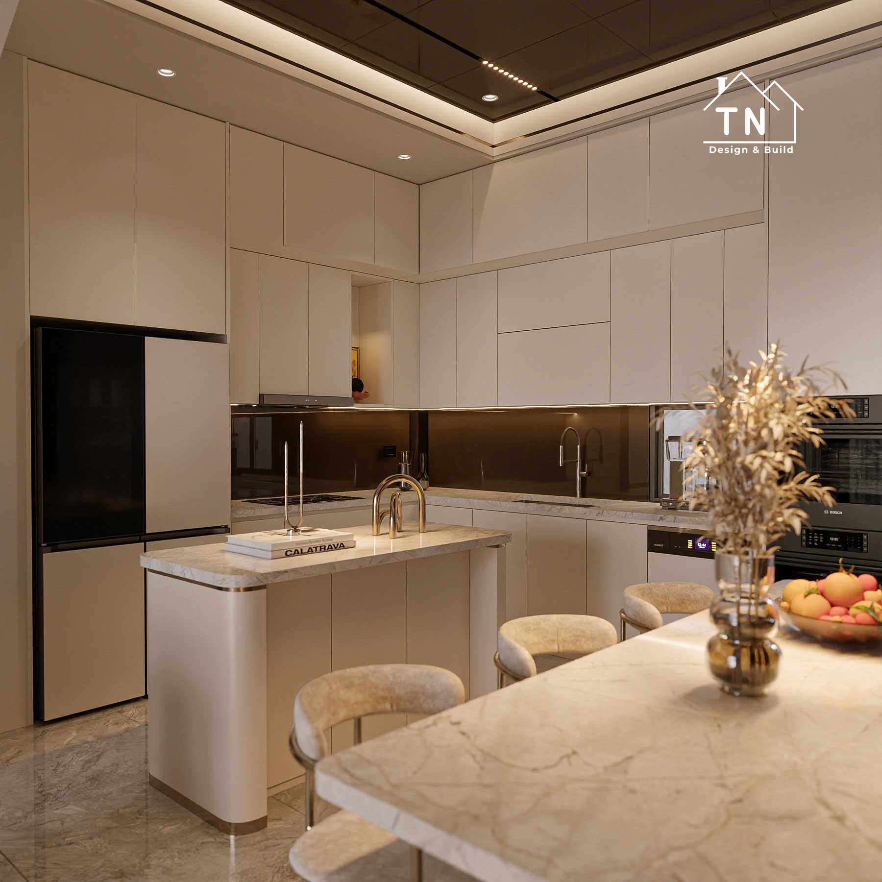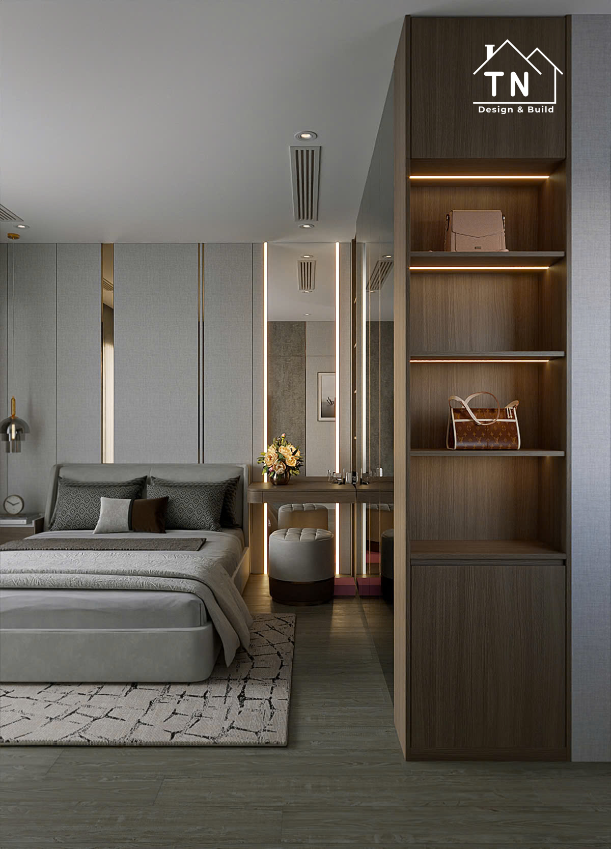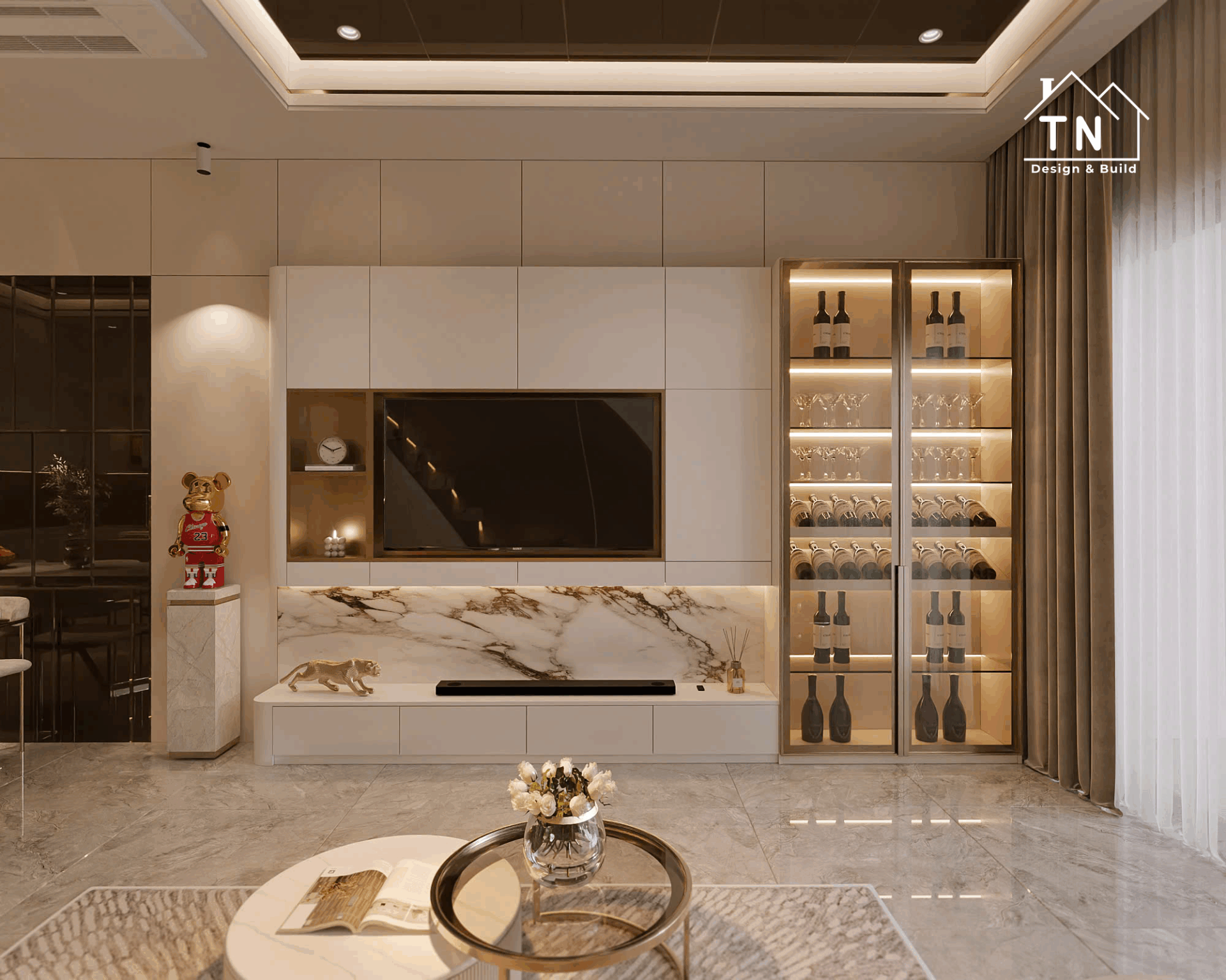 Công trình kiến tạo theo tinh thần Modern Luxury, nơi sự sang trọng không phô trương mà thể hiện qua cách tổ chức không gian chặt chẽ, vật liệu được chọn lọc tinh tế và ánh sáng được xử lý khéo léo. Tổng thể công trình mang cảm giác thoáng đãng, liền mạch, với những mảng gỗ ấm, đá tự nhiên và bề mặt hoàn thiện cao cấp đan xen hài hòa, tạo nên một không gian sống vừa hiện đại vừa giàu chiều sâu cảm xúc.