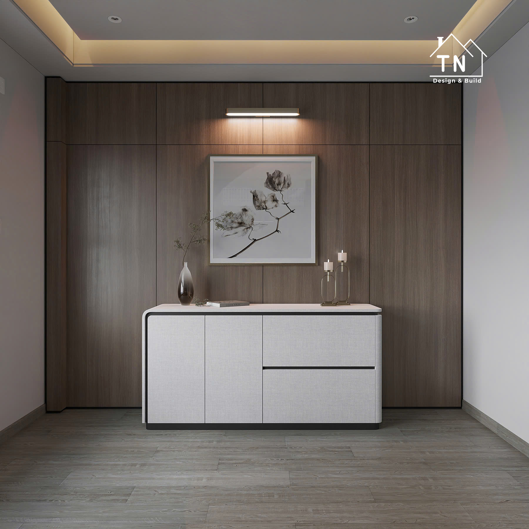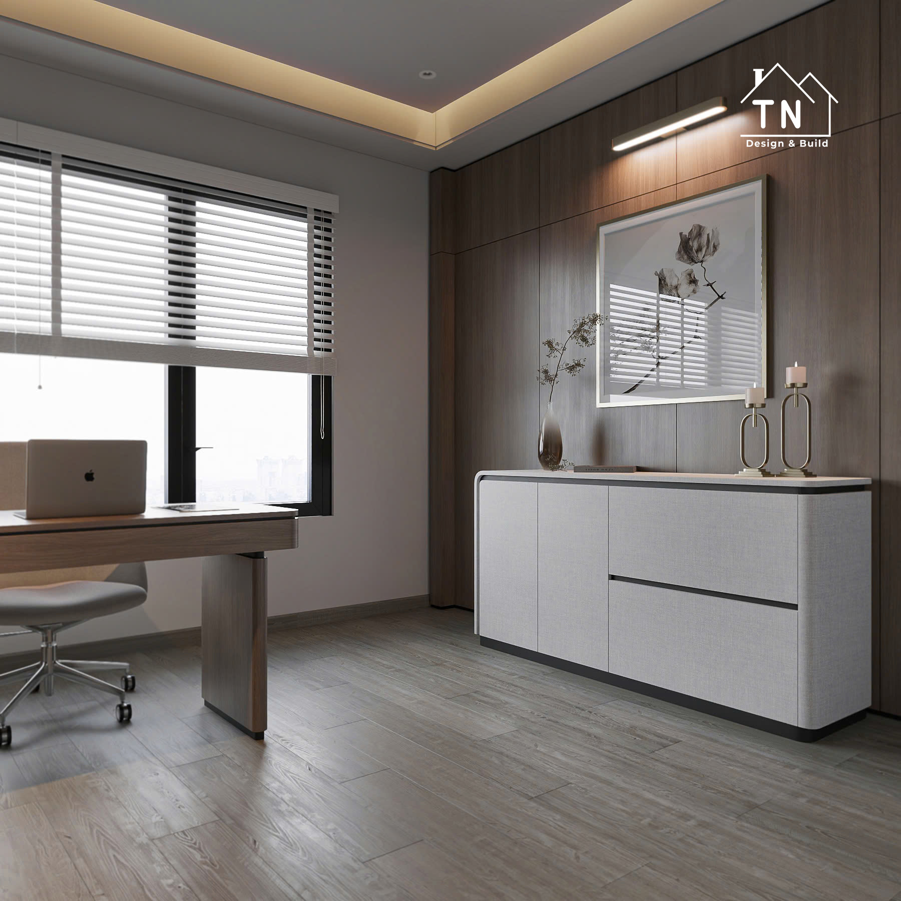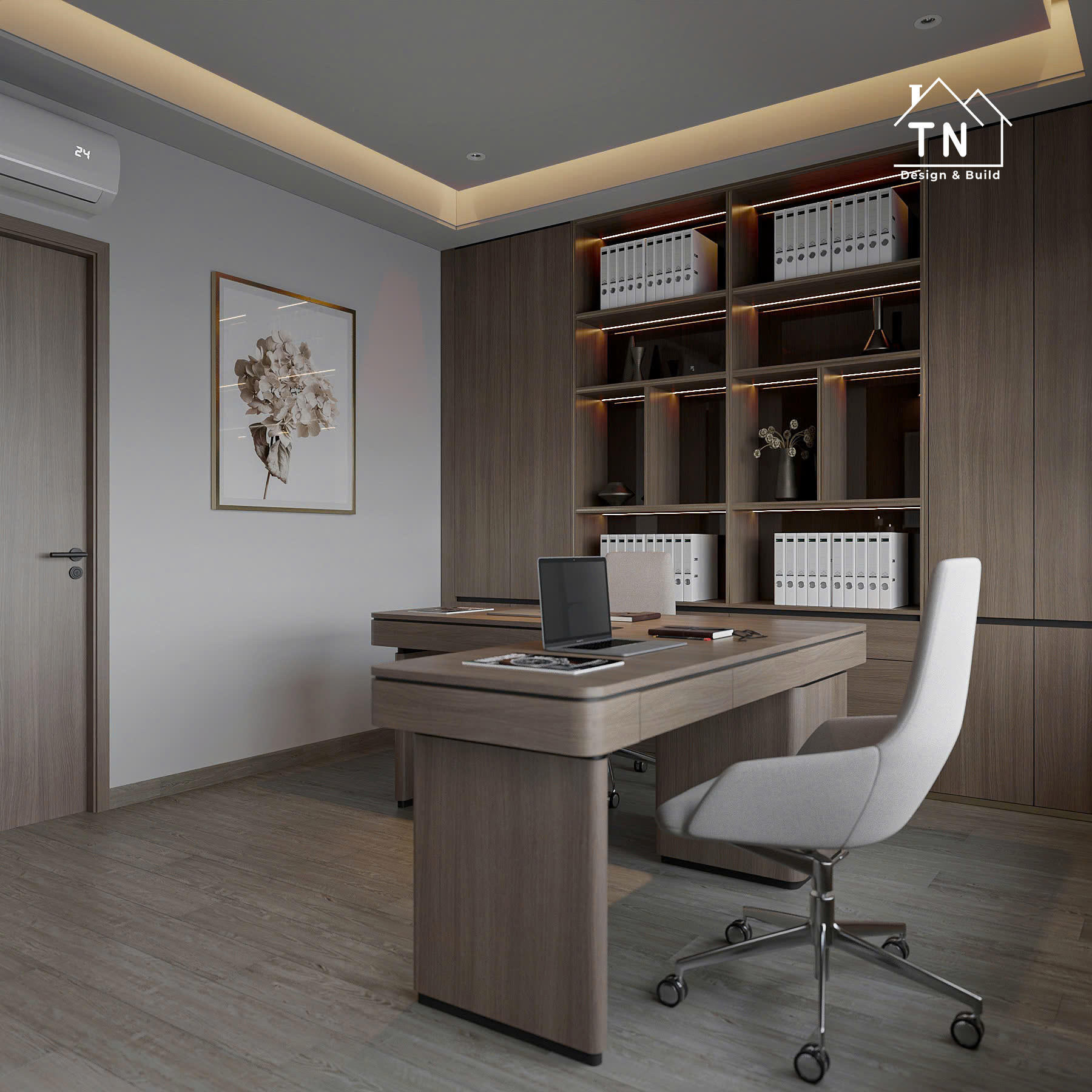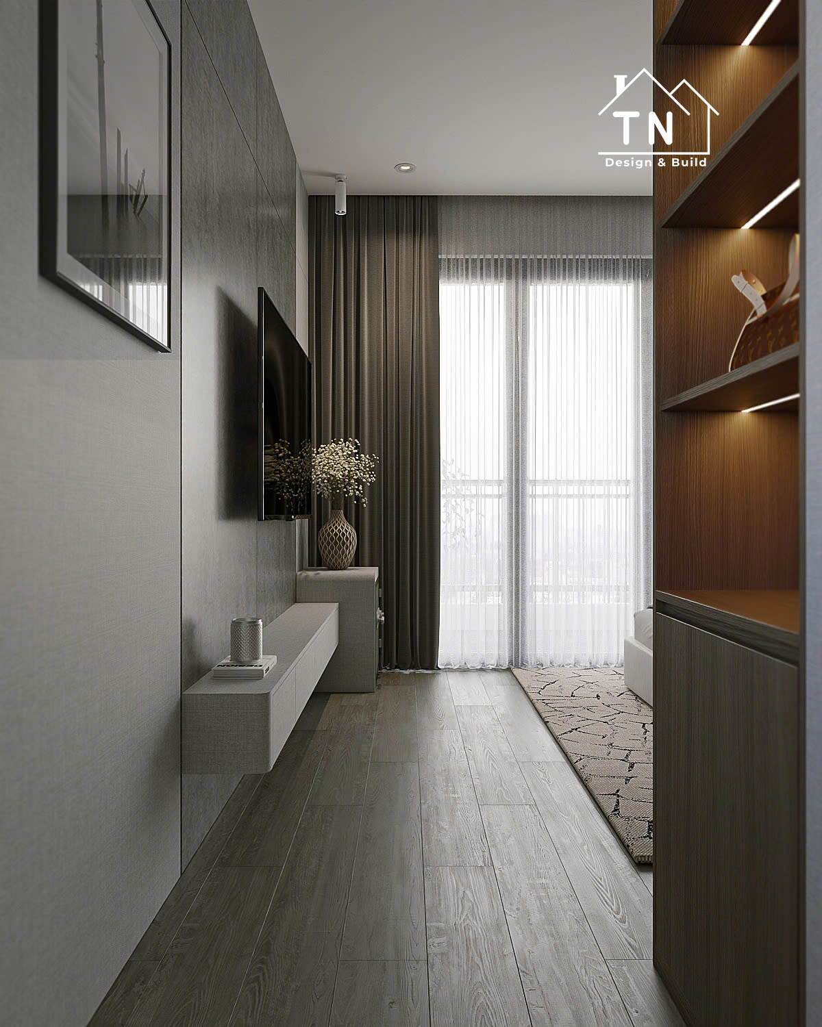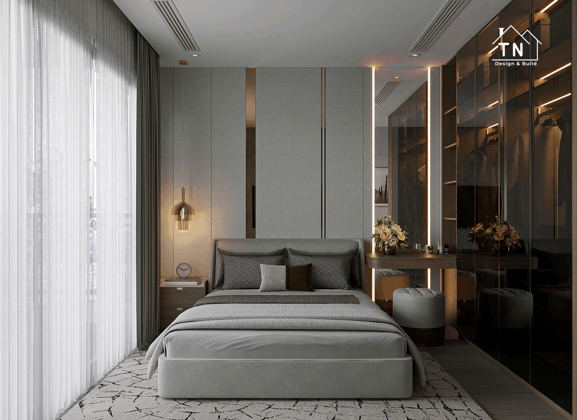 Công trình kiến tạo theo tinh thần Modern Luxury, nơi sự sang trọng không phô trương mà thể hiện qua cách tổ chức không gian chặt chẽ, vật liệu được chọn lọc tinh tế và ánh sáng được xử lý khéo léo. Tổng thể công trình mang cảm giác thoáng đãng, liền mạch, với những mảng gỗ ấm, đá tự nhiên và bề mặt hoàn thiện cao cấp đan xen hài hòa, tạo nên một không gian sống vừa hiện đại vừa giàu chiều sâu cảm xúc.