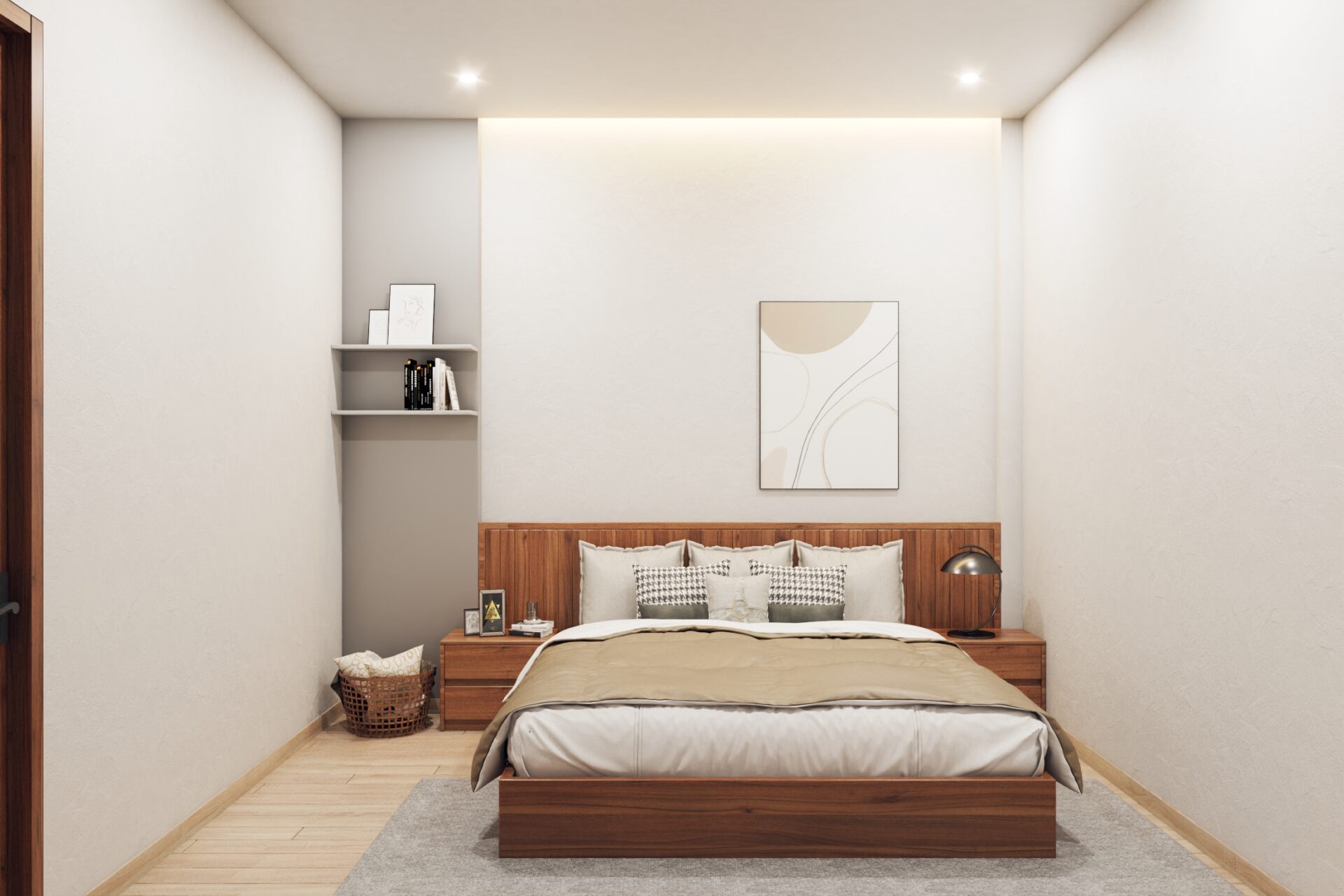Thay vì chọn phong cách xa hoa, quý phái thì anh Xuân Anh lại lựa chọn cách thiết kế mộc mạc, đơn giản nhằm tạo nên cảm giác thư giãn, thoải mái nhất. Những chất liệu đơn giản được sử dụng cho rèm cửa, ga giường, thảm trải sàn kết hợp với màu sắc cơ bản tạo nét tinh tế nhưng không kém phần tiện nghi. Cửa sổ trong phòng được tận dụng tối đa, loại rèm kéo 2 lớp luôn là lựa chọn hoàn hảo để thu hút ánh sáng vừa đủ, không quá gắt, tạo sức sống cho căn phòng.