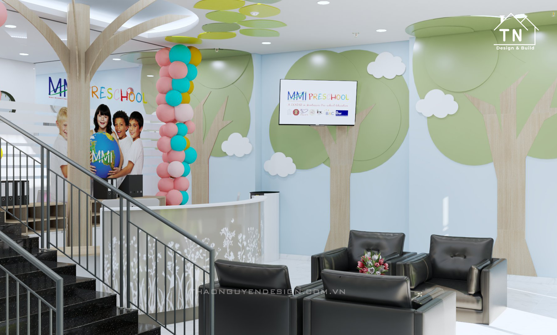 Trường tư thục quốc tế Modern  Montessori International Việt Nam – Dĩ An MMI ( Global international preschool ) nằm trong chuỗi trường tư thục quốc tế được singapore đầu tư trực tiếp tại Việt Nam. Và công ty thiết kế kiến trúc xây dựng Thảo Nguyên đã rất vinh dự khi được MMI tin tưởng và giao cho trọng trách thiết kế và xây dựng chuỗi hệ thống đó.