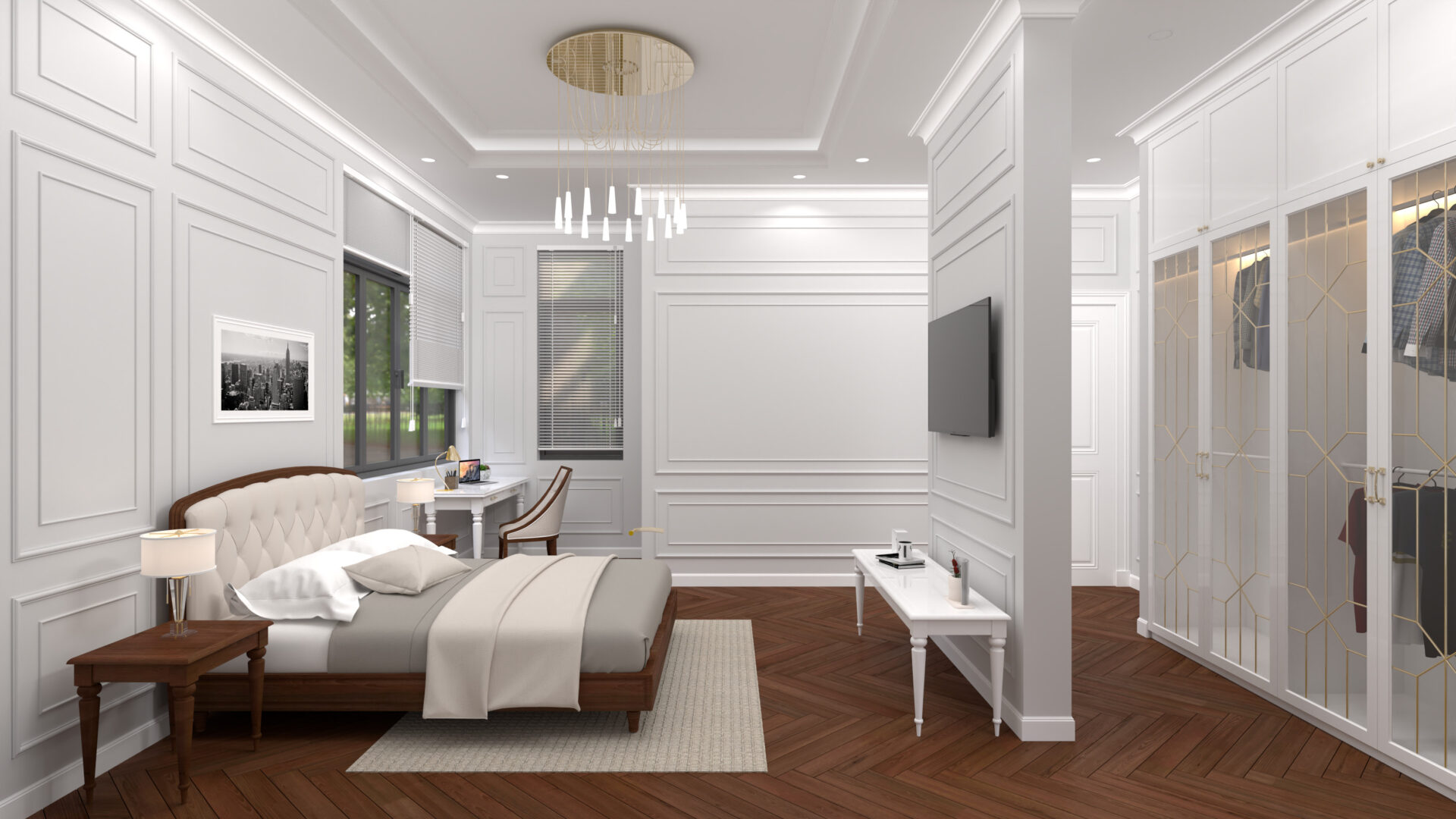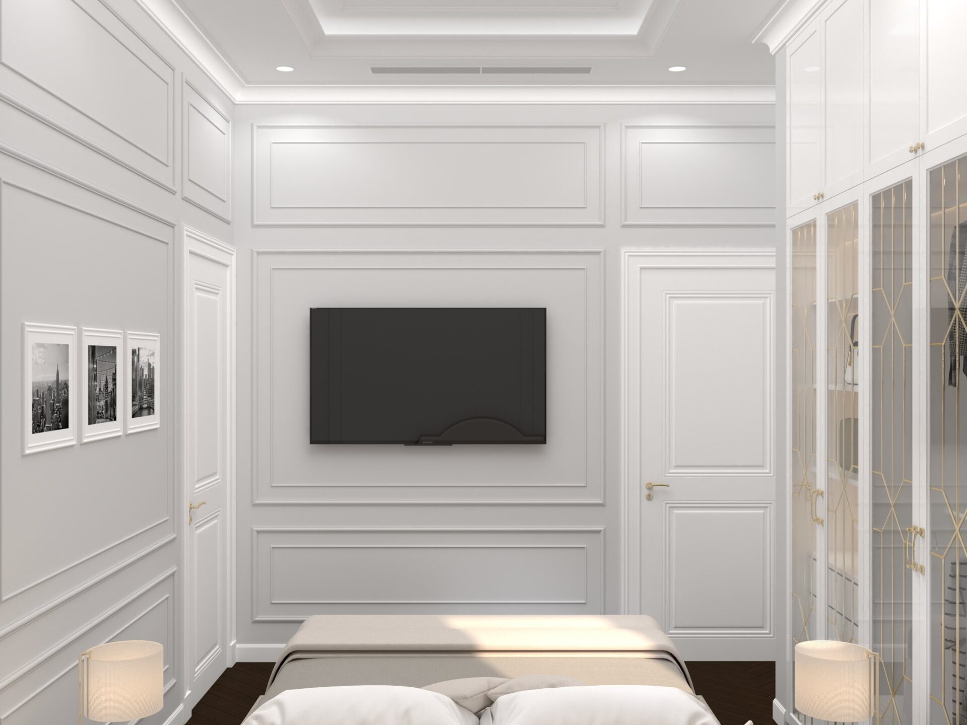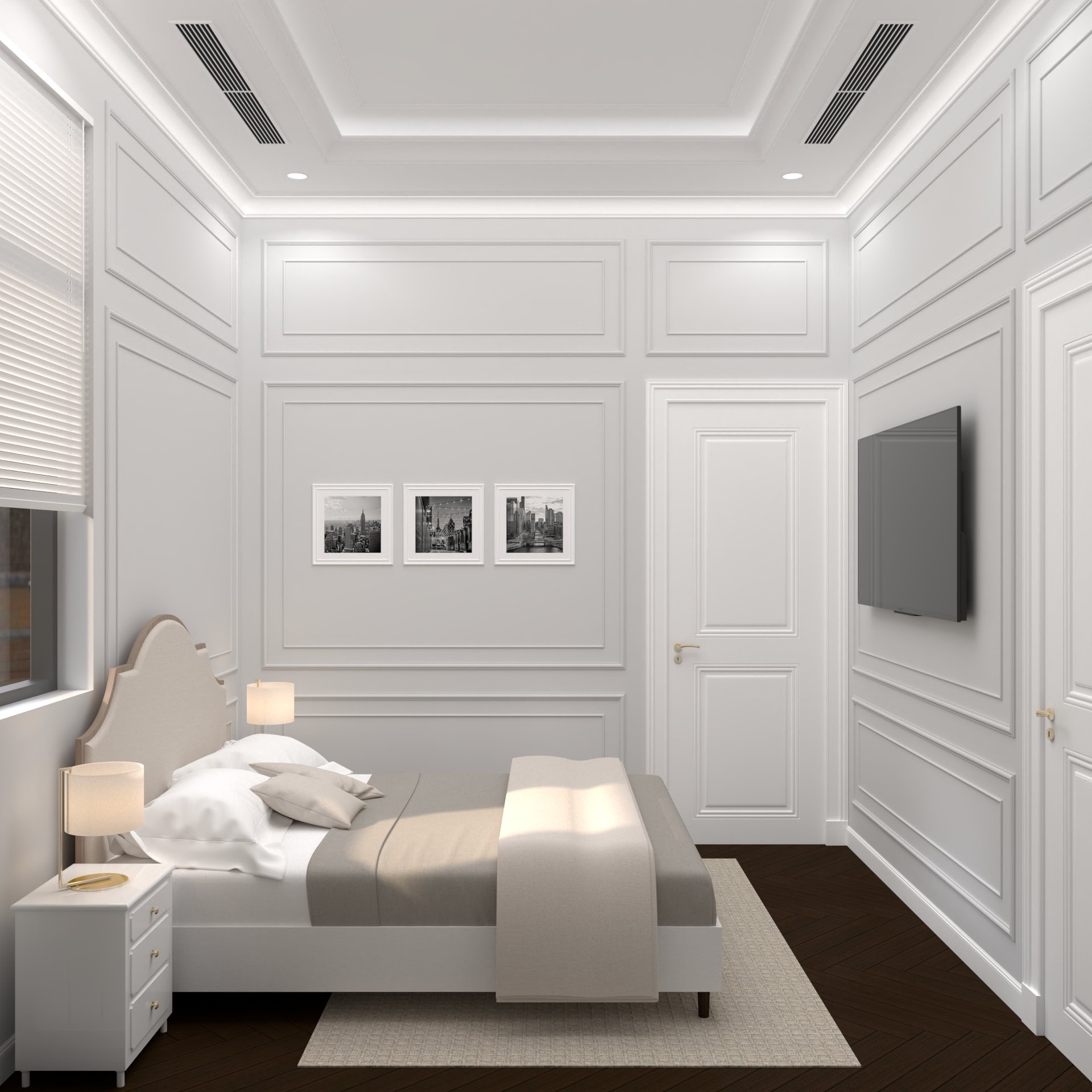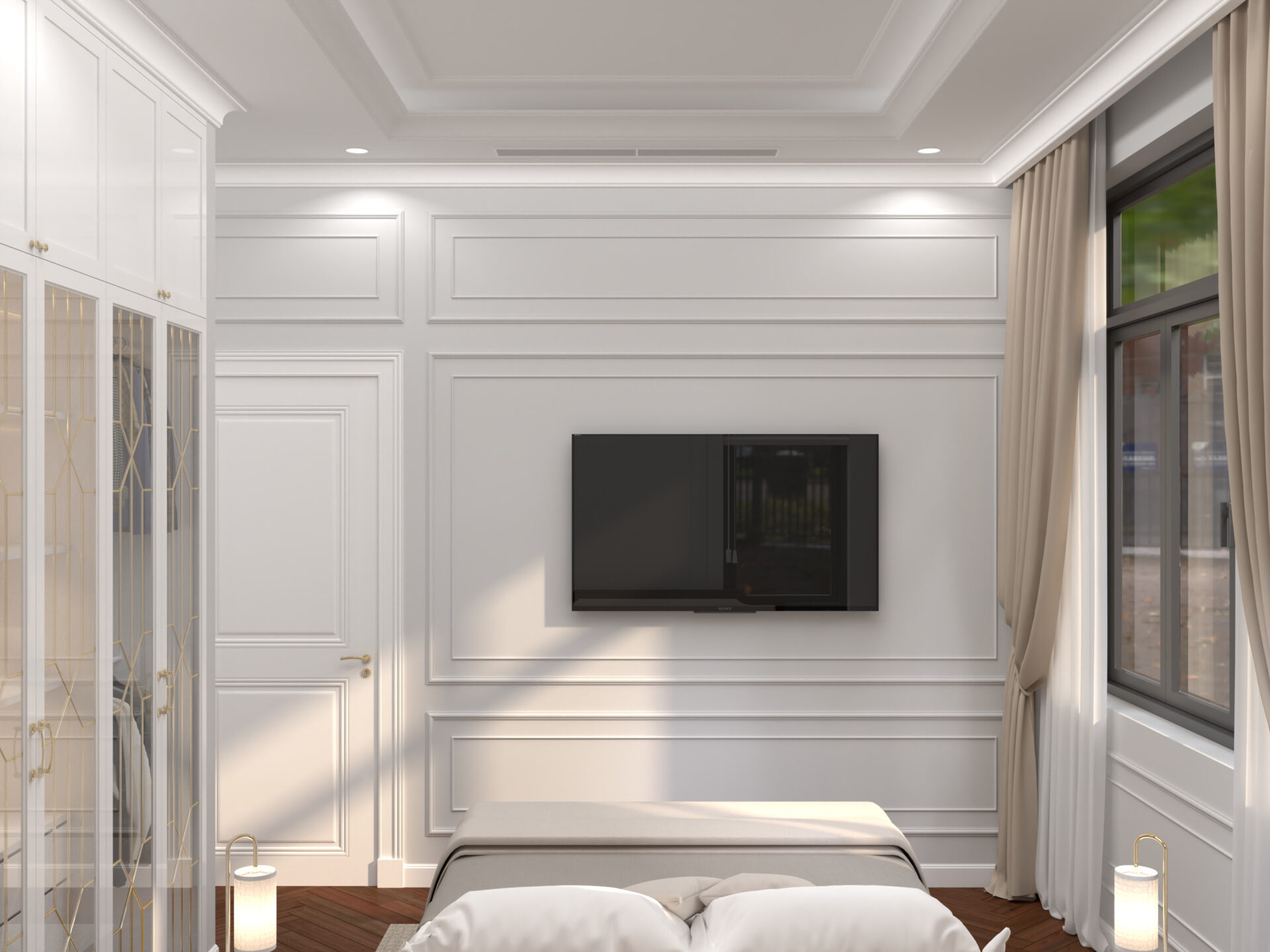 Các kiến trúc sư công ty chúng tôi đã tinh tế chọn gam màu  trắng làm chủ đạo cho phòng ngủ, hài hòa và đảm bảo phòng có nhiều ánh sáng. Gia chủ có thể sử dụng thêm rèm cửa để tùy chỉnh và tận dụng ánh sáng tự nhiên vào ban ngày tốt nhất. Nội thất sử dụng cho phòng ngủ biệt thự cũng cần hài hòa với phong cách tổng thể, cân bằng theo sở thích, cá tính của chủ nhân. Như vậy sẽ mang đến không gian kiến trúc thống nhất mà vẫn cá tính nổi bật của chủ căn phòng.