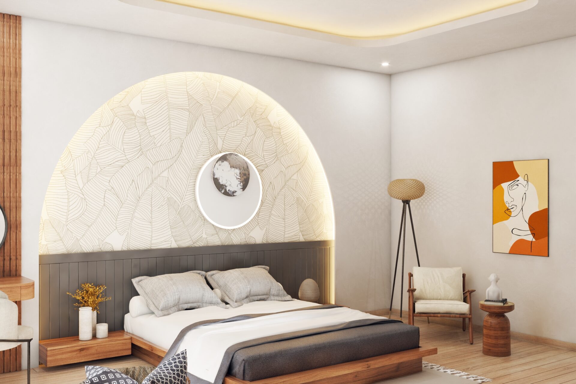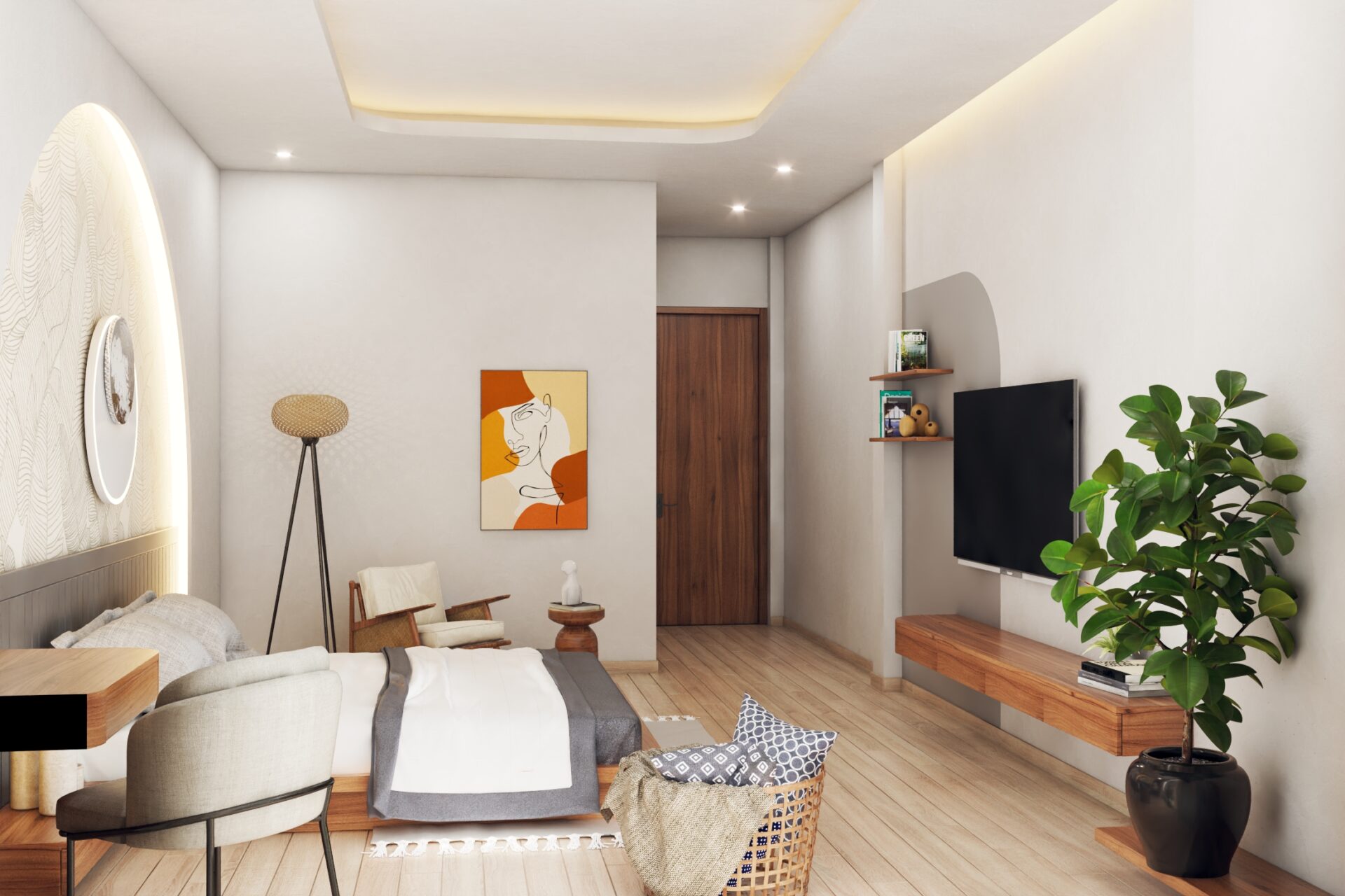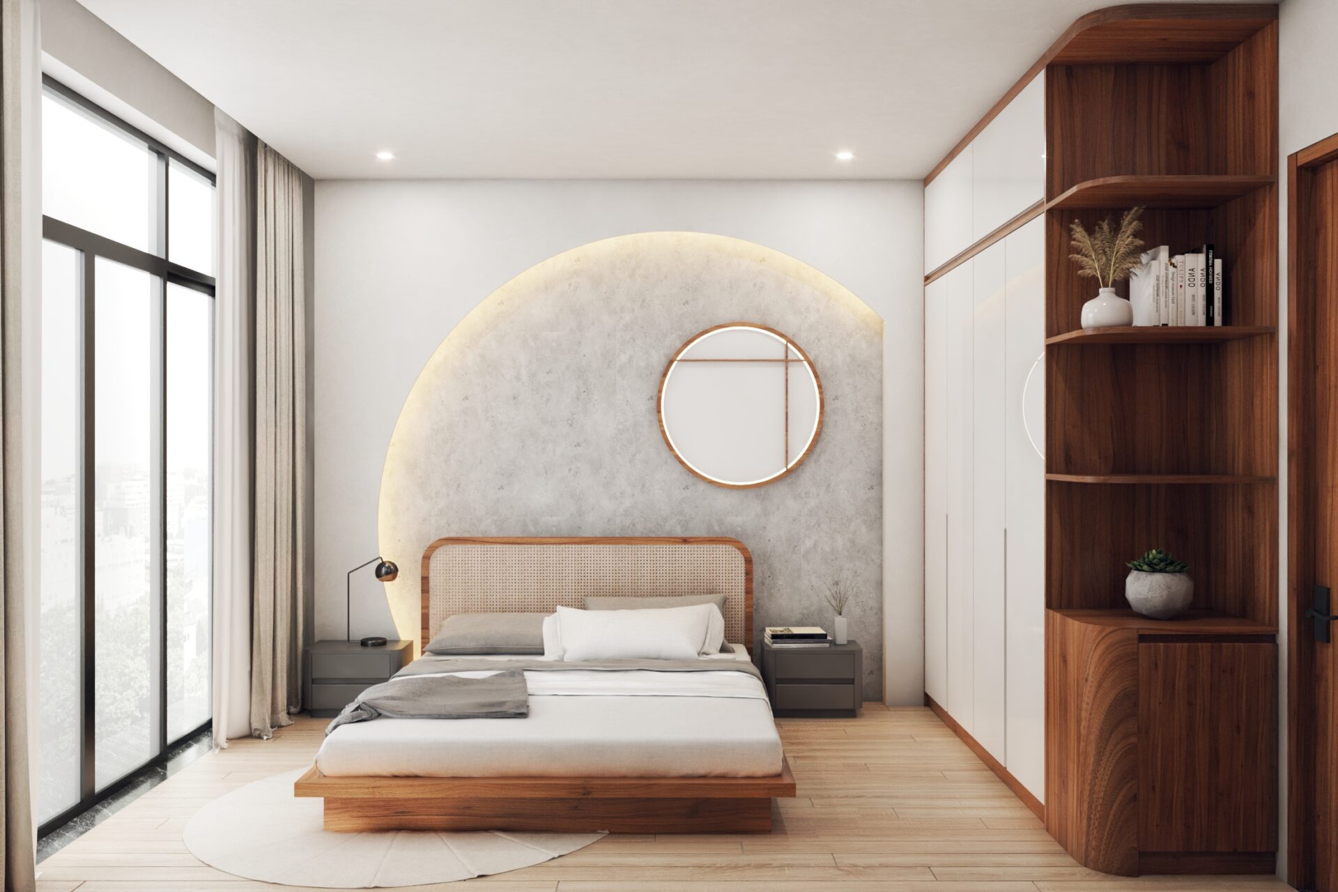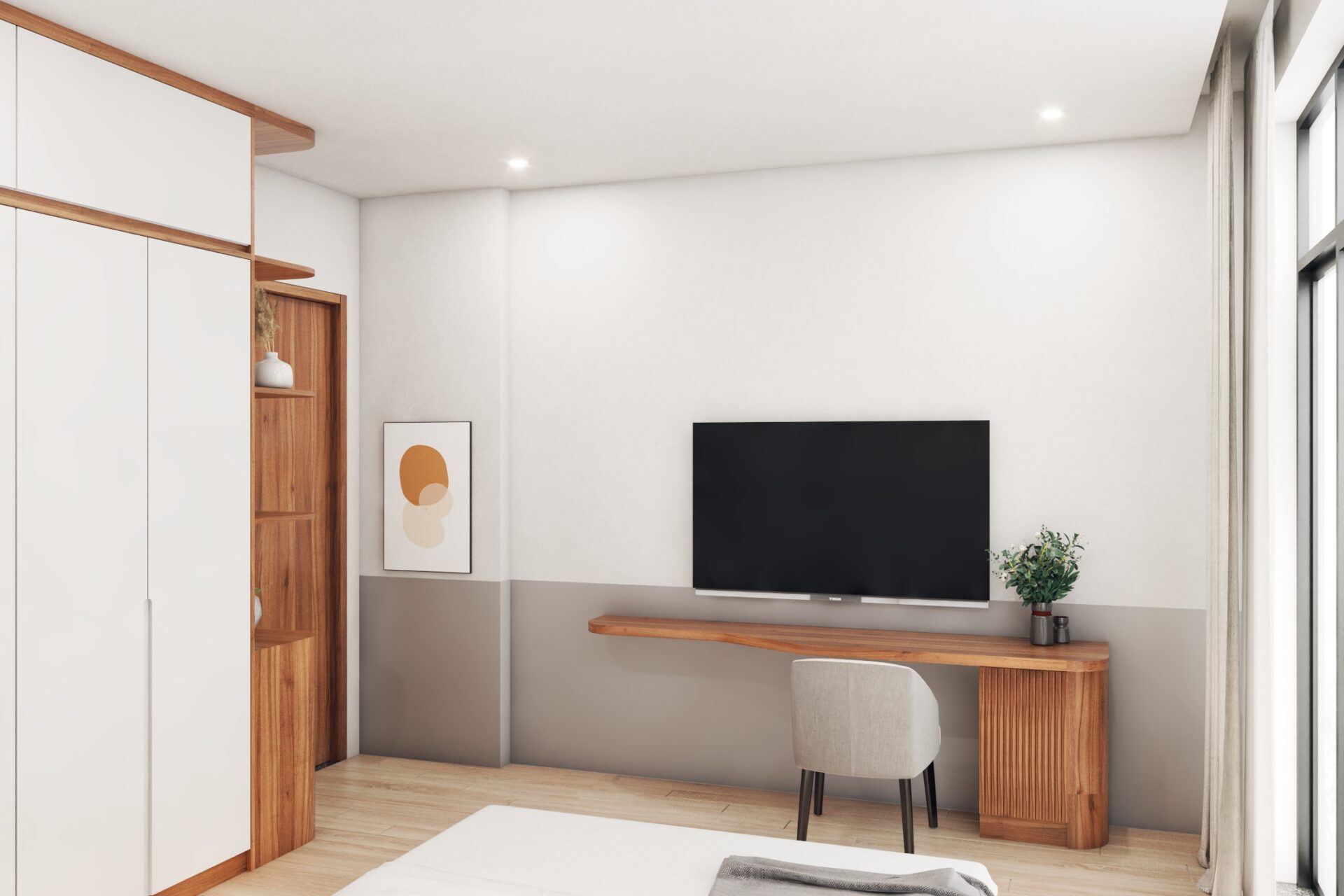 Thay vì chọn phong cách xa hoa, quý phái thì anh Xuân Anh lại lựa chọn cách thiết kế mộc mạc, đơn giản nhằm tạo nên cảm giác thư giãn, thoải mái nhất. Những chất liệu đơn giản được sử dụng cho rèm cửa, ga giường, thảm trải sàn kết hợp với màu sắc cơ bản tạo nét tinh tế nhưng không kém phần tiện nghi. Cửa sổ trong phòng được tận dụng tối đa, loại rèm kéo 2 lớp luôn là lựa chọn hoàn hảo để thu hút ánh sáng vừa đủ, không quá gắt, tạo sức sống cho căn phòng.
