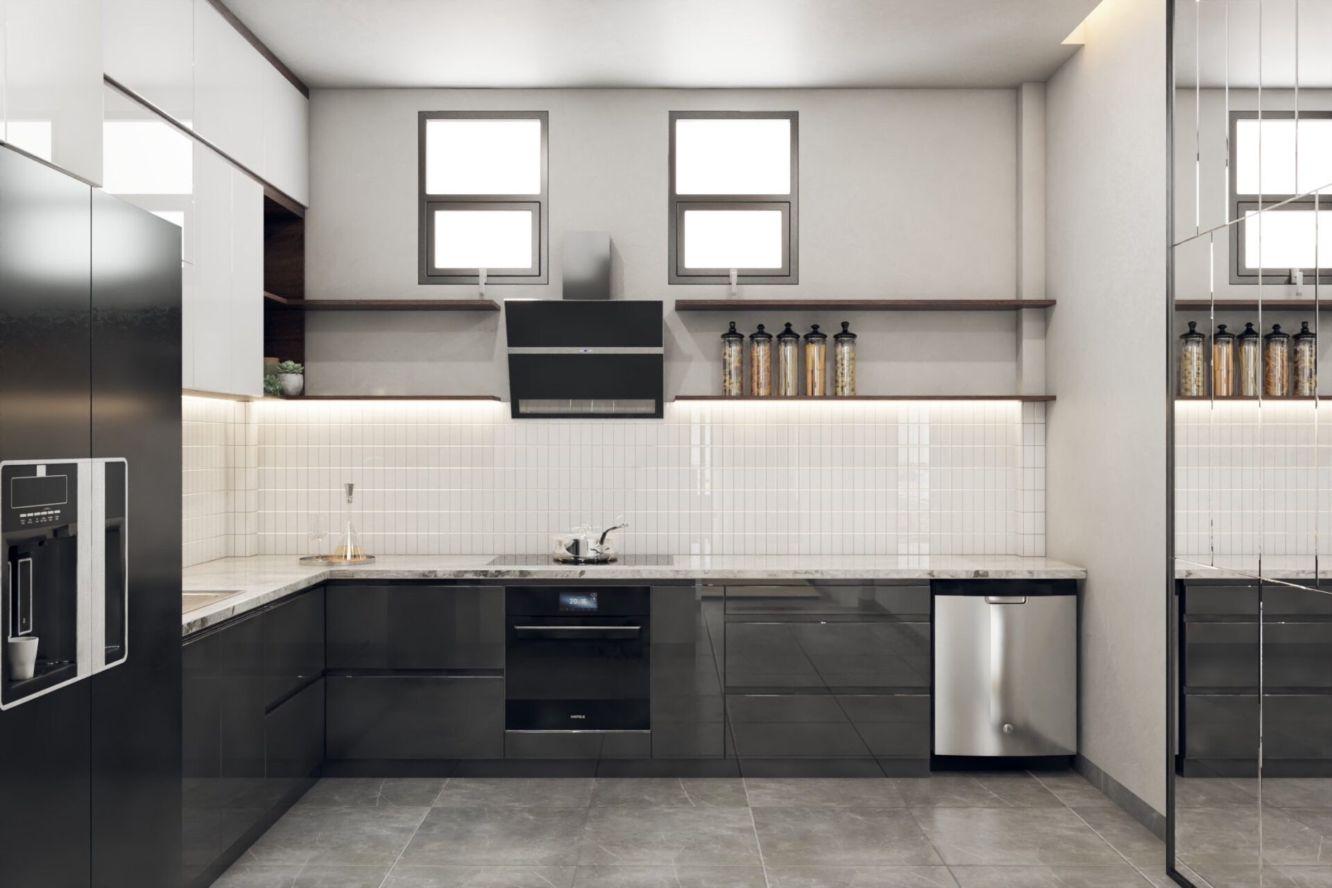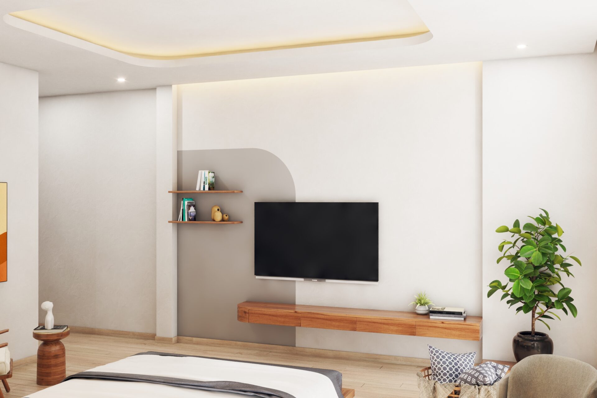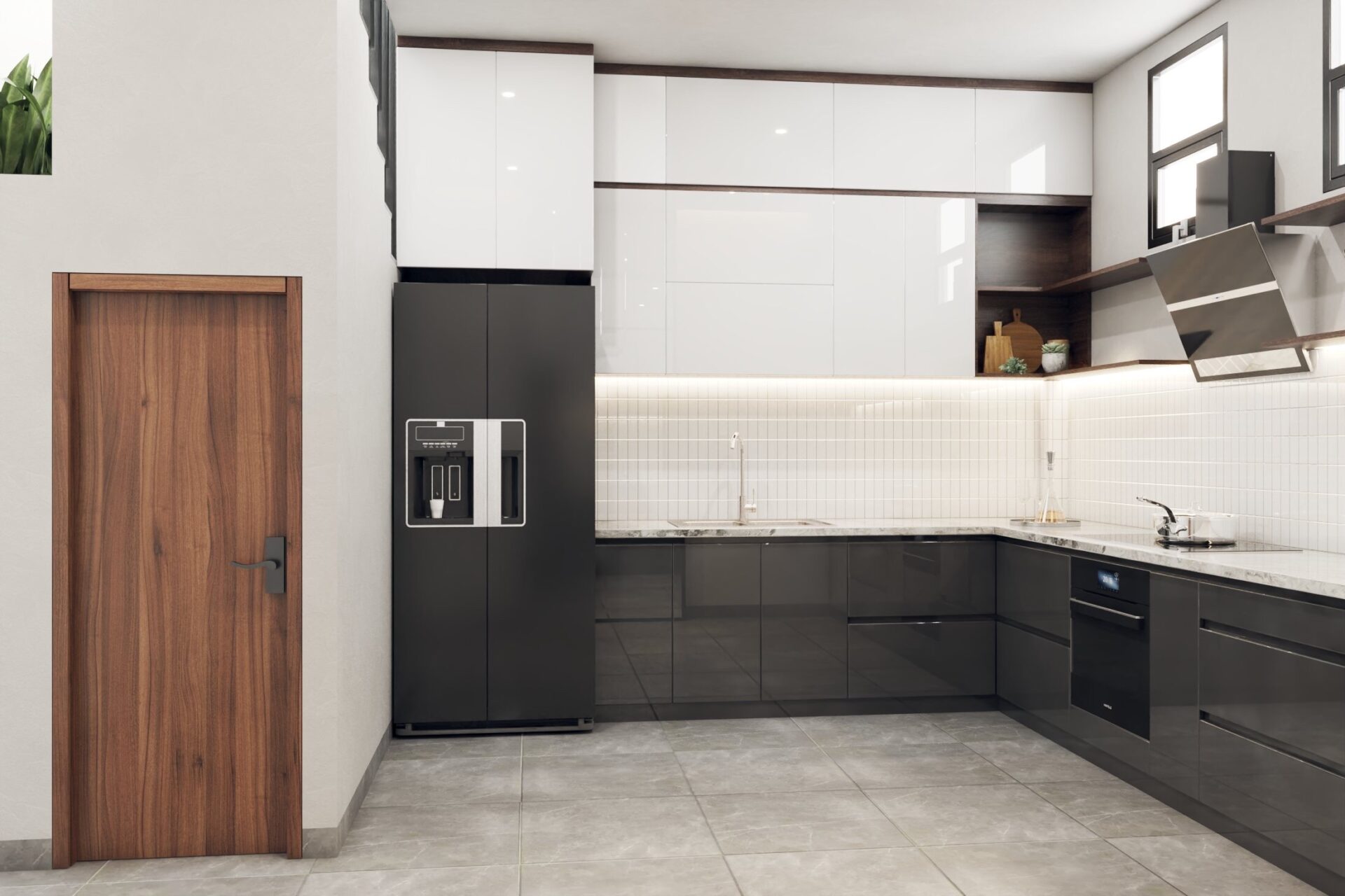 Sự kết hợp màu sắc tương phản phổ biến nhất là nâu – trắng. Một màu tối kết hợp một màu sáng luôn tạo chiều sâu cho ngôi nhà. Hơn nữa, 2 tông màu này sẽ làm nổi bật thiết kế hiện đại theo xu hướng hiện nay. Đồ nội thất gỗ chất liệu cao cấp từ gỗ óc chó  tôn lên vẻ sang trọng của phòng khách nhà phố  theo phong cách hiện đại được thiết kế từ 2 chất liệu gỗ tóc chó màu nâu sang trọng. Nội thất đồng bộ vì vậy không thể thiếu giường ngủ gỗ óc chó tự nhiên, để tạo nên vẻ đẹp hài hòa cho toàn bộ không gian, sử dụng gam màu trắng từ tường, giấy dán tường đầu giường, hay sàn lát đá vân mây.