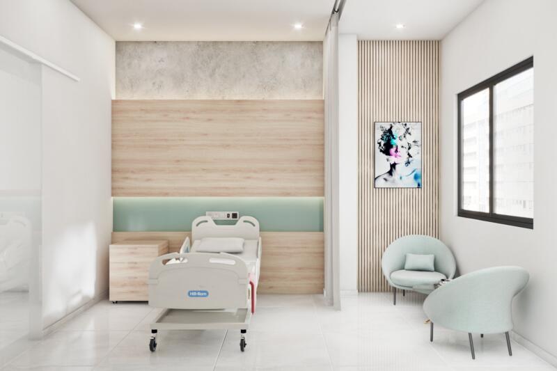 Không gian phòng mổ của thẩm mỹ là khu vực khá đặc biệt, các kiến trúc sư công ty chúng tôi  đã tinh tế thiết kế phòng mổ theo hình vuông bố trí trang thiết bị theo dây chuyền theo công năng, không gian phòng mỗ  luôn hạn chế góc cạnh để đảm bảo vệ sinh,  phòng mổ luôn đảm bảo thông khí, các tủ thiết bị âm tường  tạo phẫu trường rộng rãi, để các phẫu thuật viên dễ dàng phối hợp với nhau. Sử dụng nội thất hiện đại, cách bài trí khoa học, kết hợp với ánh đèn vàng dịu nhẹ cùng cây xanh giúp không gian trở nên gần gũi. Một mô hình thiết kế nội thất thẩm mỹ viện, phải đảm bảo nhiều yếu tố từ không gian, nội thất, ngoại thất, âm thanh, màu sắc, ánh sáng, bố trí vật dụng và kể cả phong thủy.