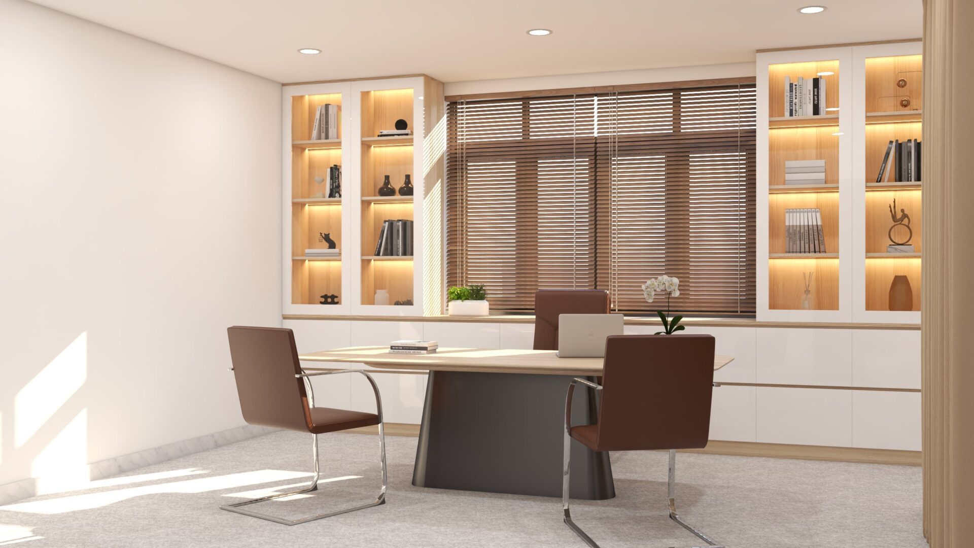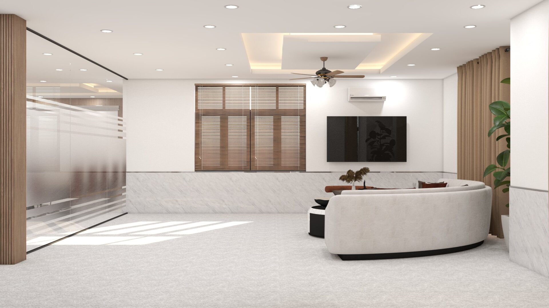 Hiểu được tầm quan trọng của việc thiết kế văn phòng, công ty TNHH Stellar 5 Media đã tìm đến công ty thiết kế kiến trúc xây dựng Thảo Nguyên để được tư vấn và thiết kế văn phòng theo mong muốn của công ty. Với sứ mệnh trở thành một địa chỉ livestream bán hàng chuyên nghiệp, công ty TNHH Stellar 5 mong muốn thiết kế một văn phòng đáp ứng được tiêu chí gồm: Chuyên nghiệp – sáng tạo – khoa học và sử dụng tone màu trắng và nâu làm chủ đạo.